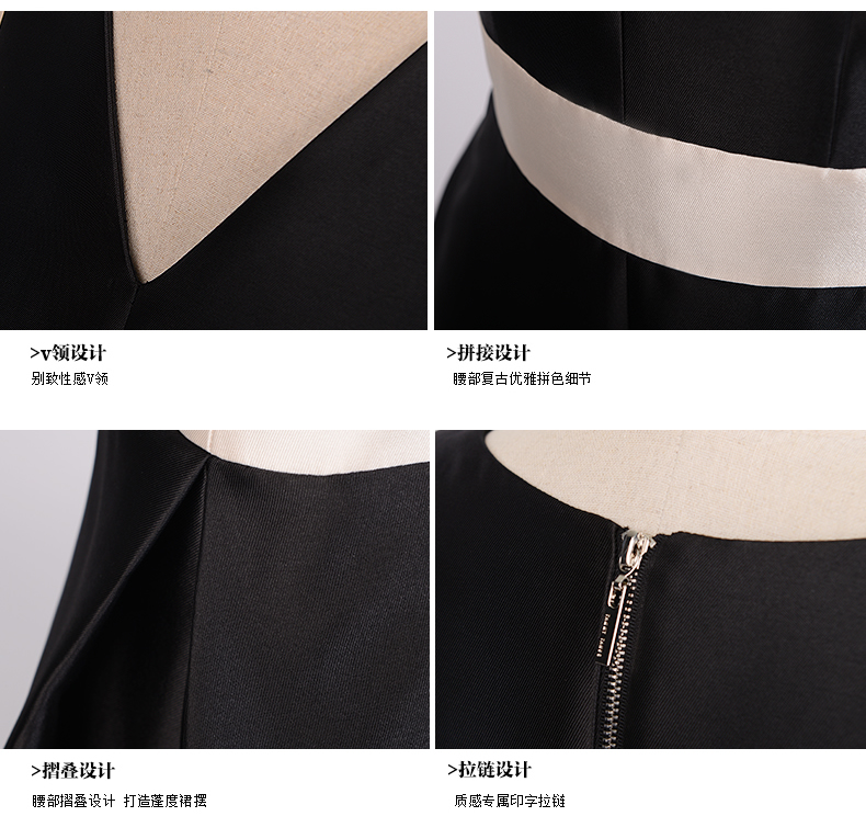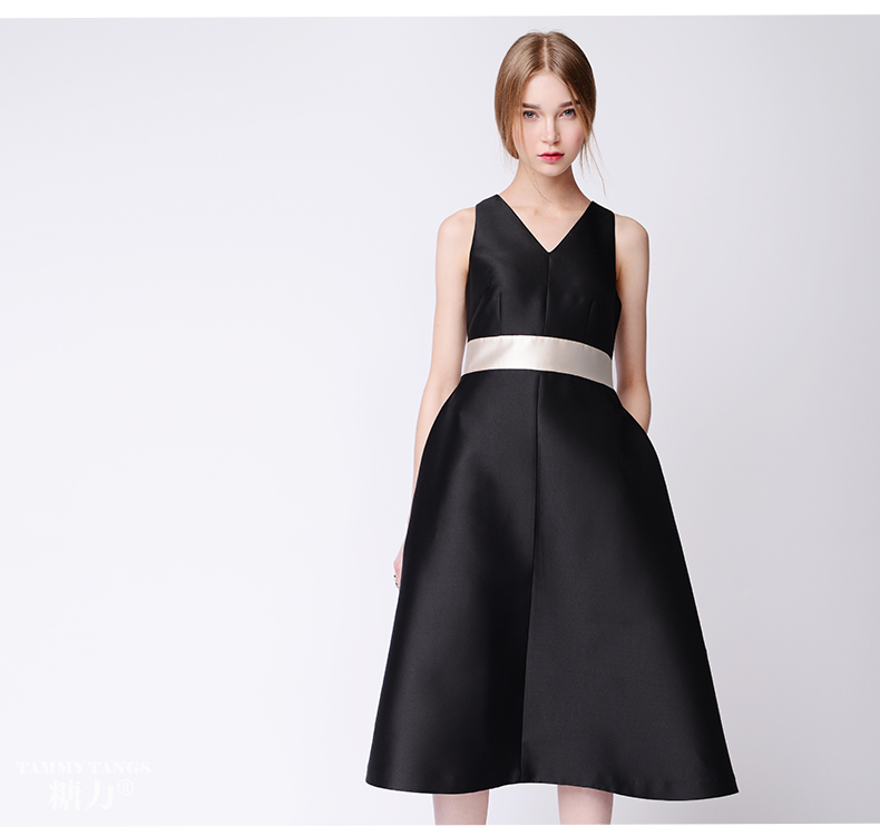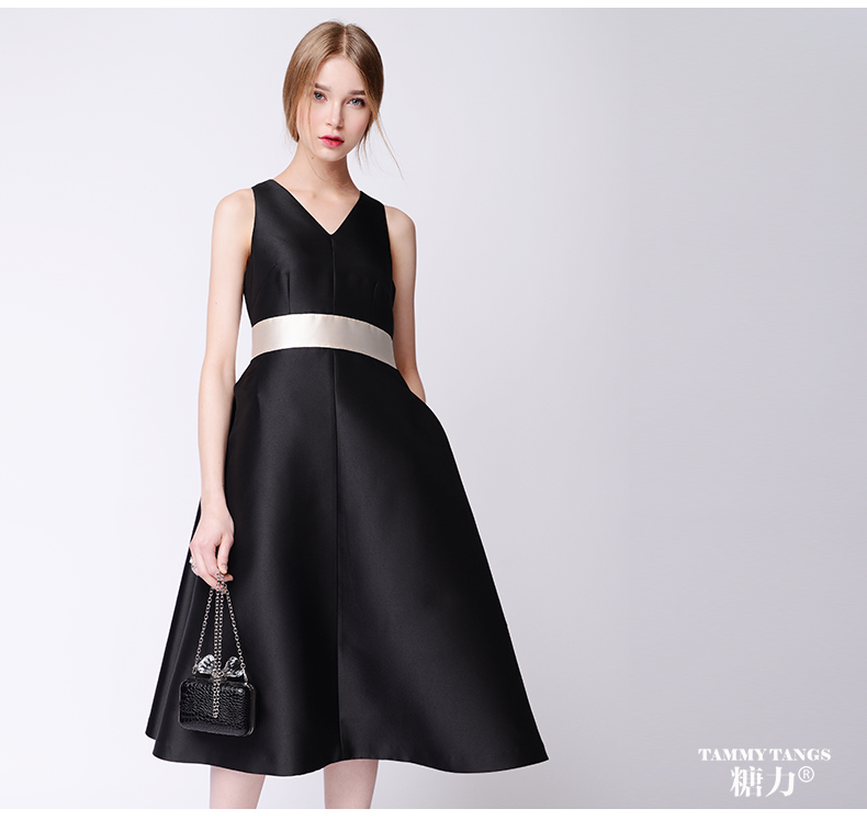糖力2016春装新款欧美 黑色淑女V领无袖小黑裙小礼服连衣裙中裙 迷惑黑 黑色 XL