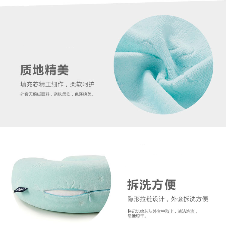 安睡宝(SOMERELLE)枕芯 记忆棉U型护颈枕 粉蓝