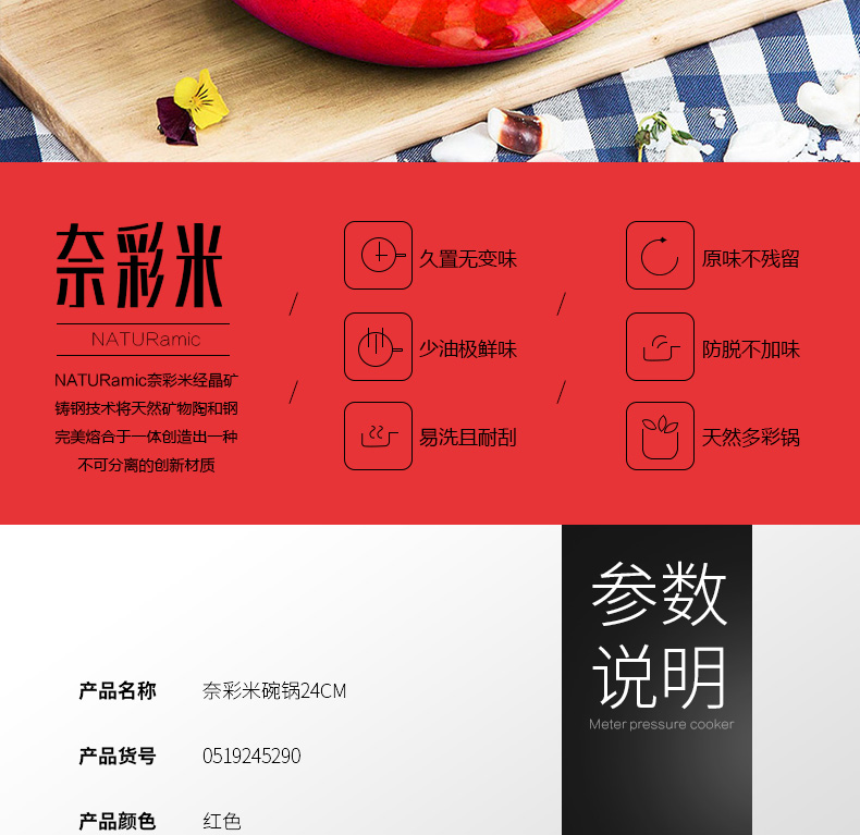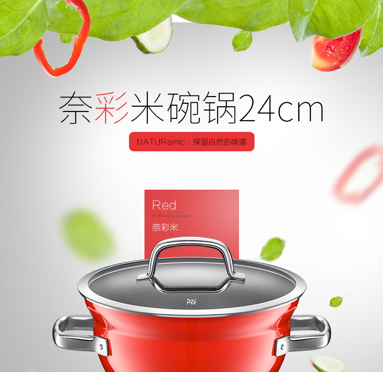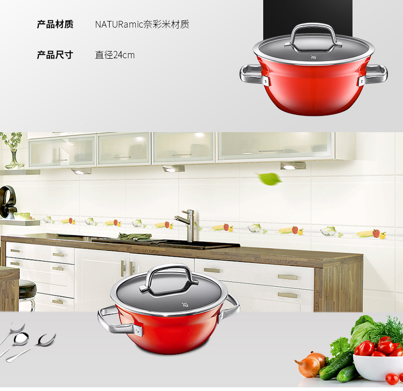 WMF 福腾宝NATURamic 奈彩米 德国进口汤锅不粘锅 多功能碗锅24CM红色