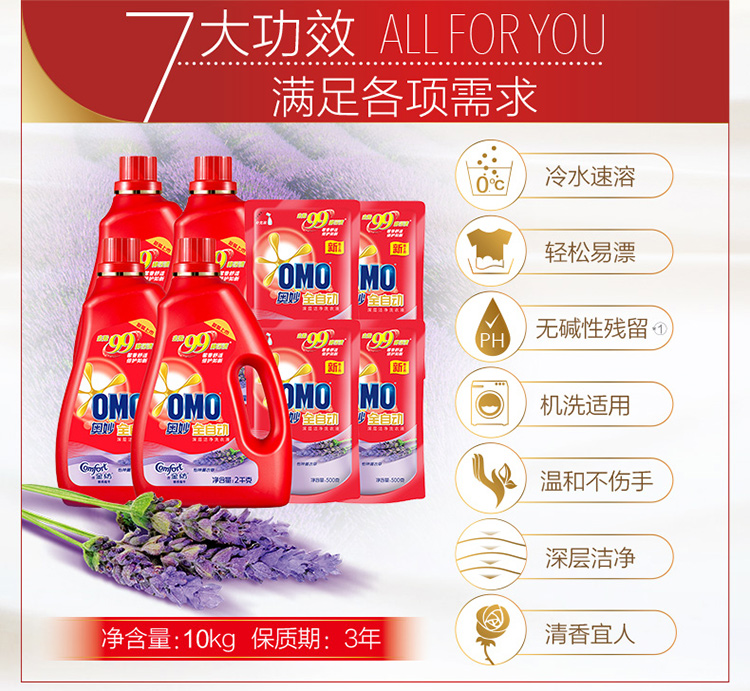 奥妙洗衣液【20斤超值套装】 全自动含金纺馨香精华2kgX4+补充装500gX4