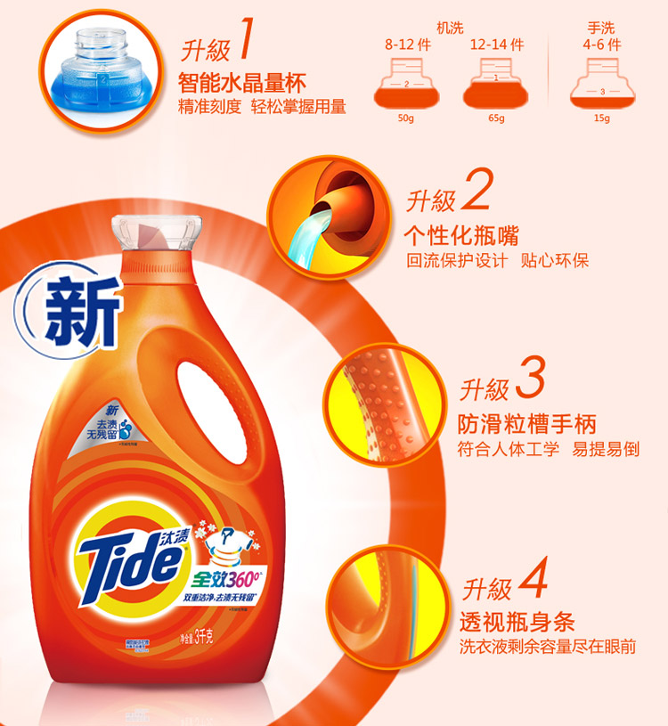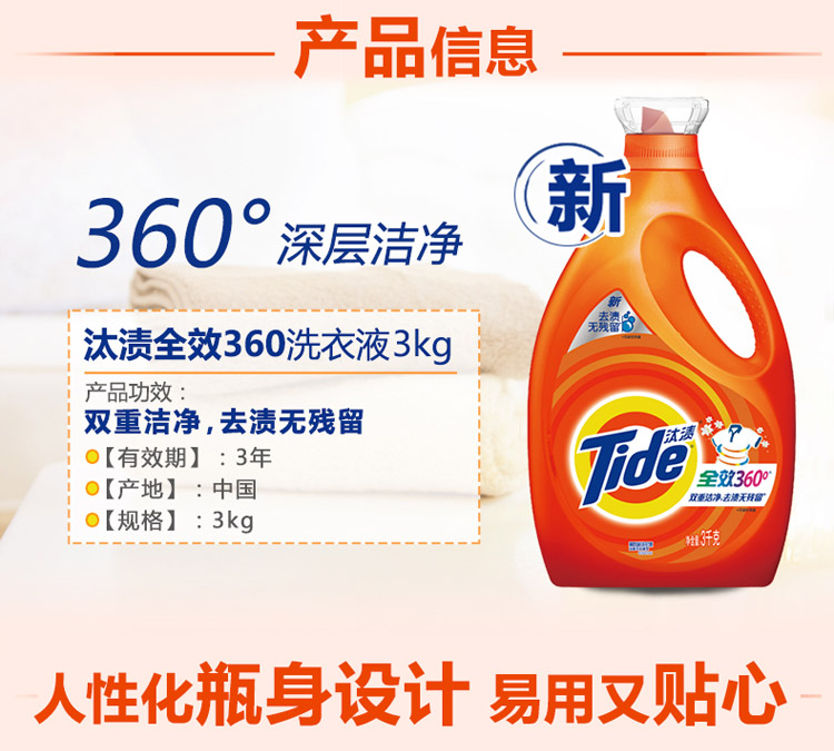 汰渍全效360度洁雅百合香型洗衣液3kg*2/瓶 柔顺 护色 去渍 含净漂因子 粉色