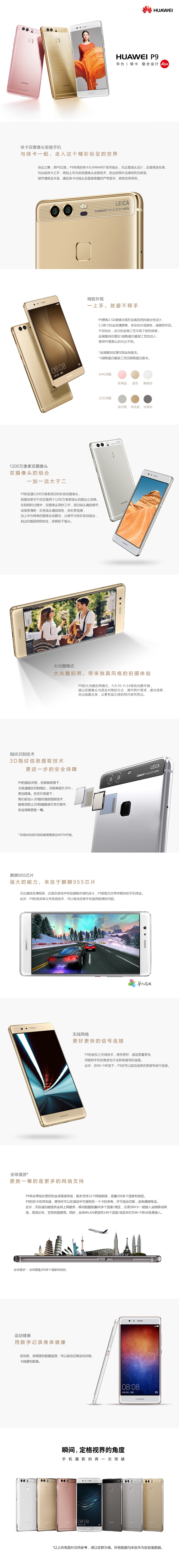 华为 P9 plus 64GB 玫瑰金 移动联通电信4G手机 双卡双待