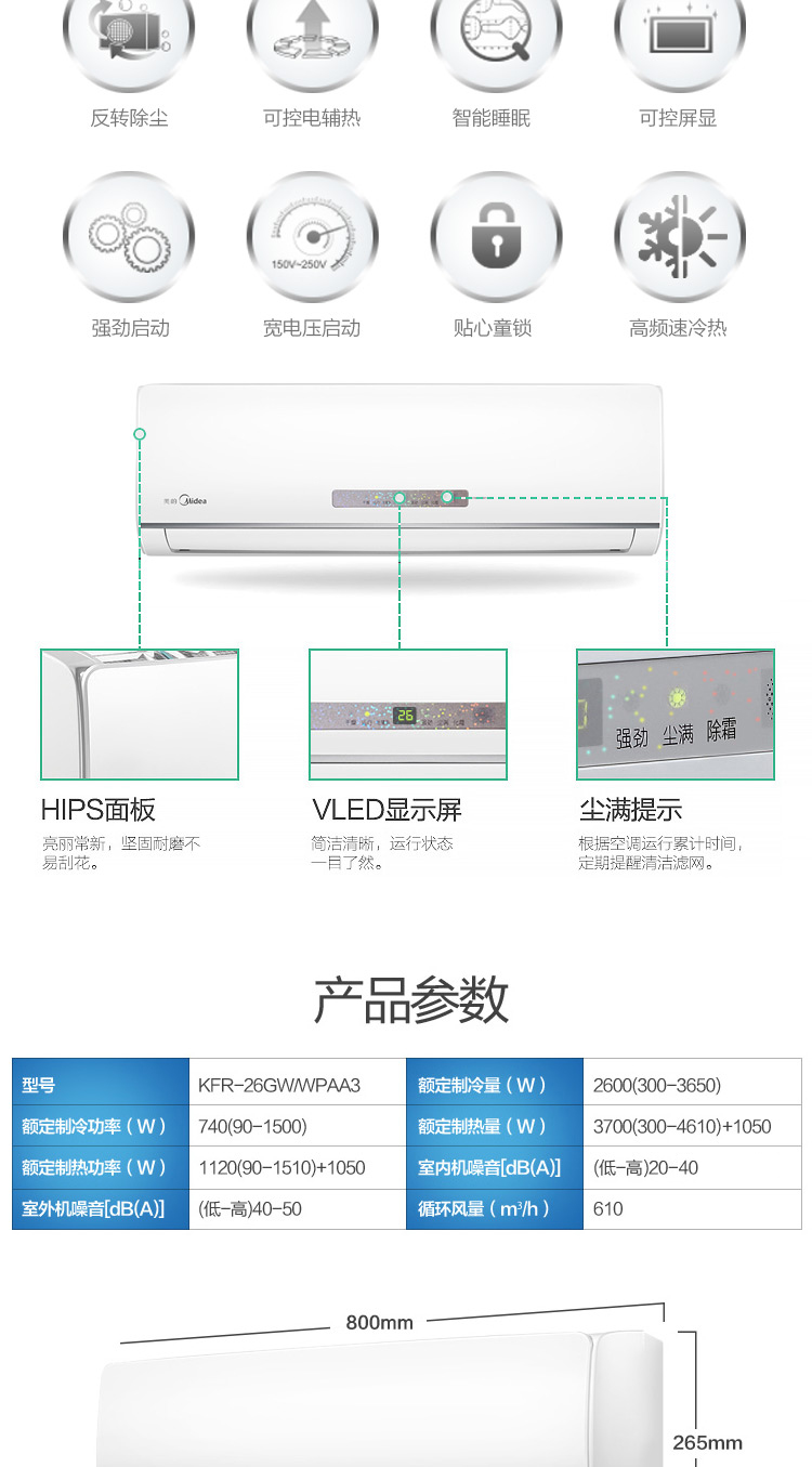 美的(Midea)大1匹 京东英雄壁挂式冷暖变频空调KFR-26GW/WPAA3 白色 小1.5匹