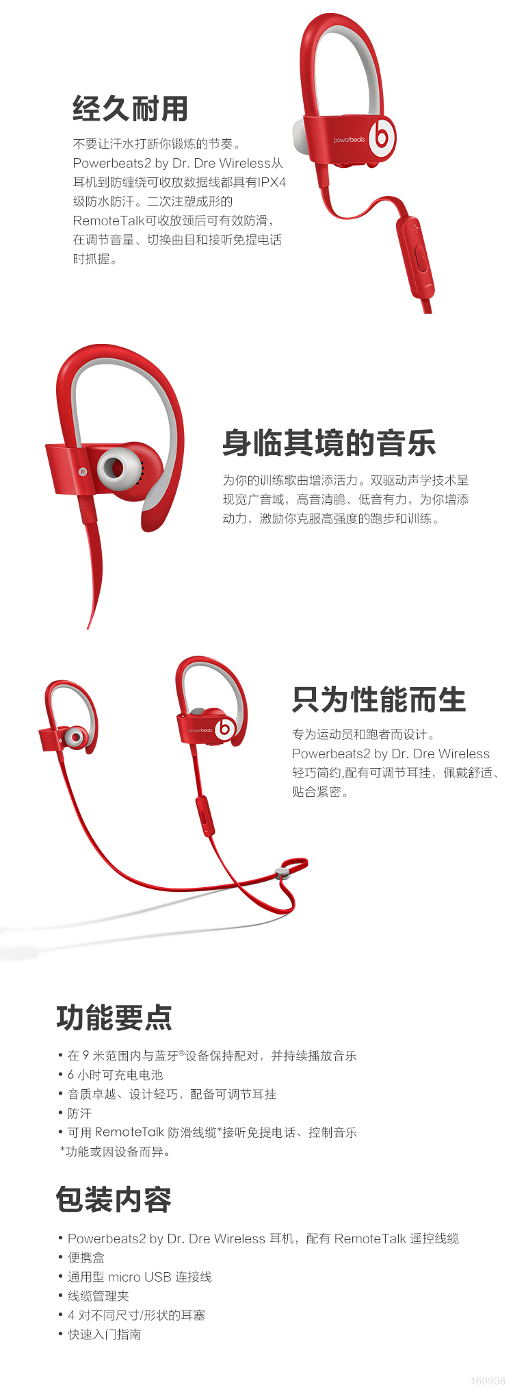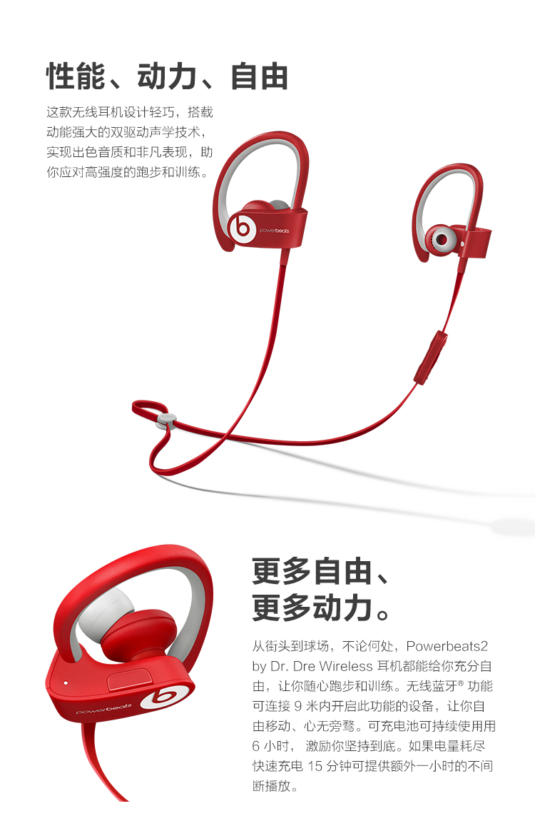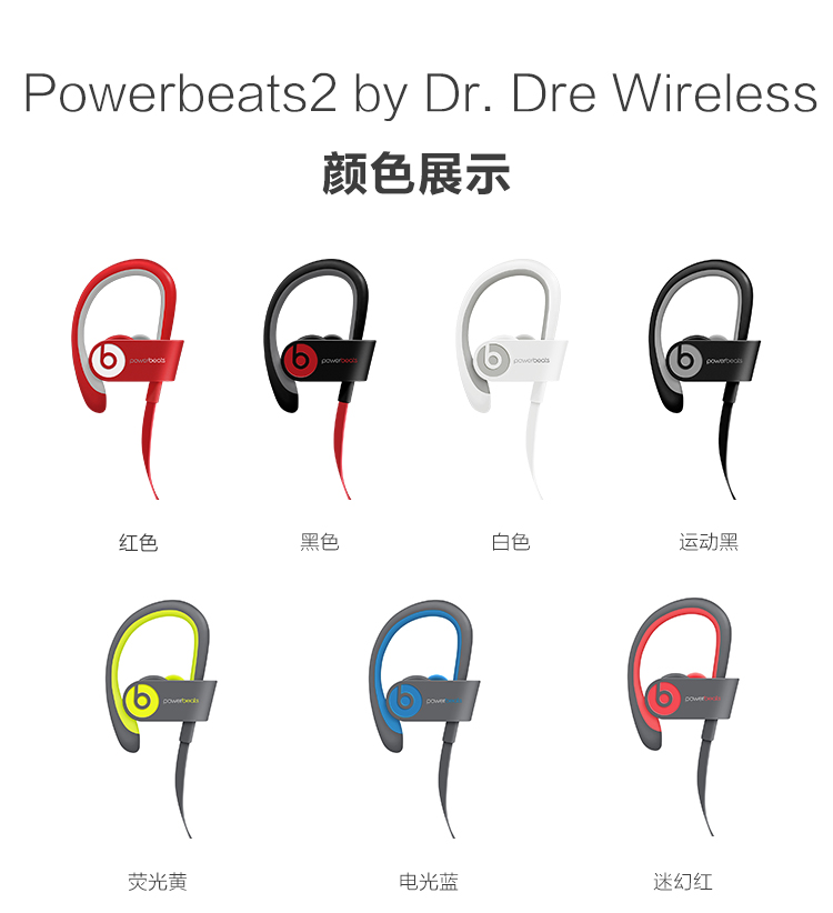 Beats Powerbeats2 by Dr. Dre Wireless 耳机 - 运动黑 双动力无线版 运动耳机 蓝牙无线 带麦 MKPP2PA/A 黑色