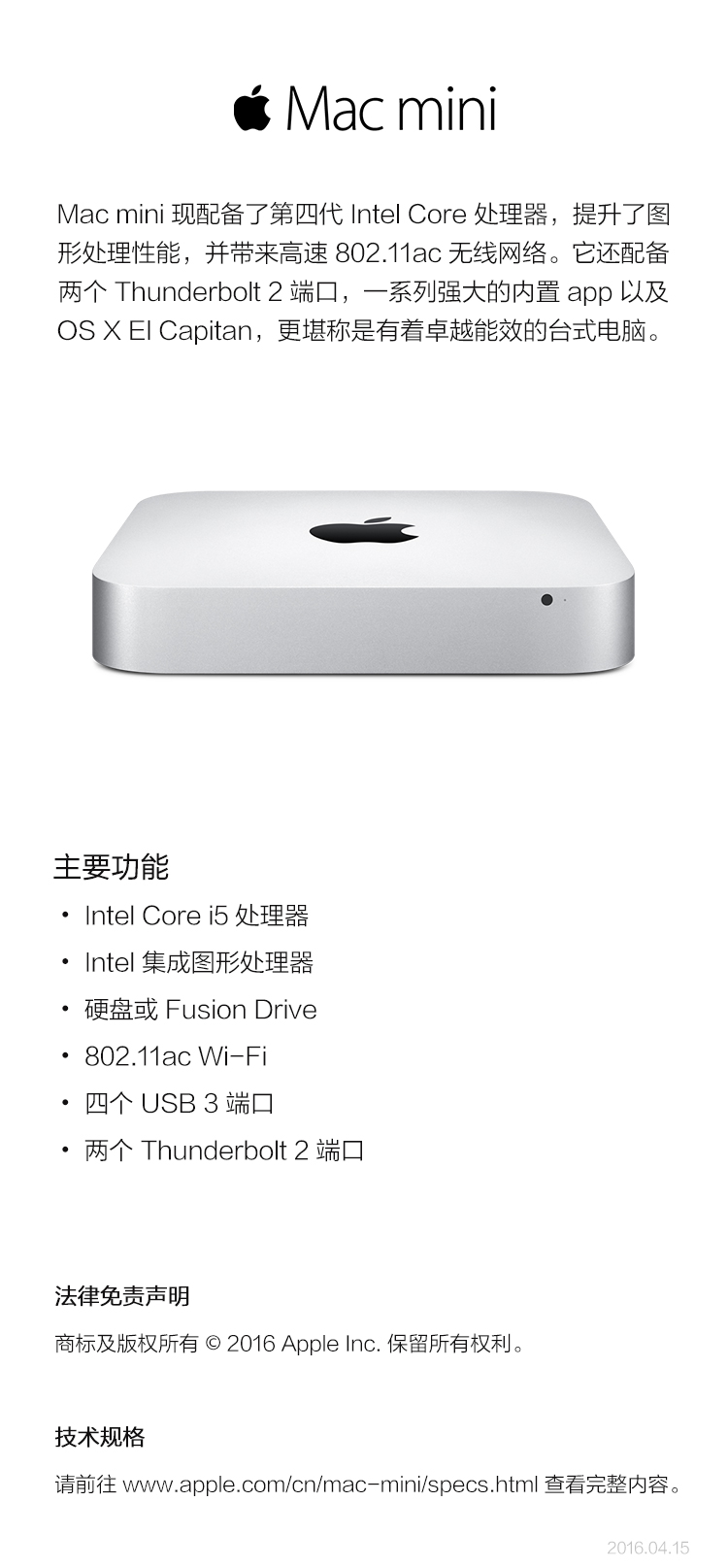 Apple Mac mini台式电脑 (Core i5 处理器/4GB内存/500G存储 MGEM2CH) i5-7200u 4G 128 500G