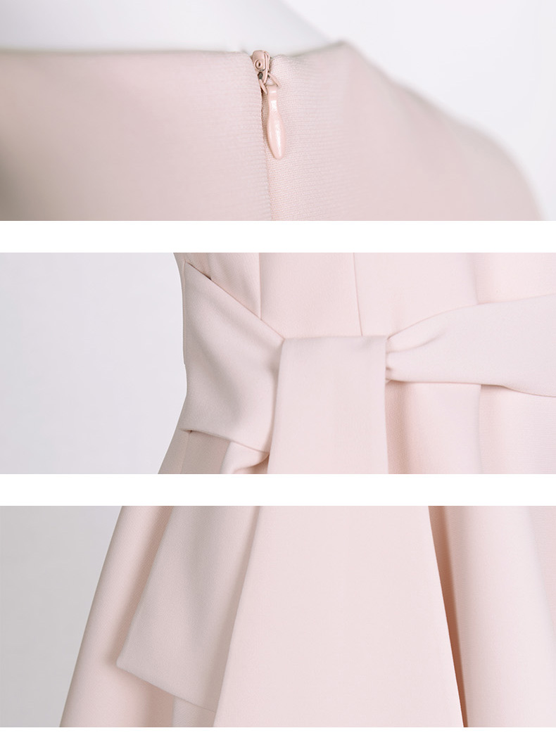 糖力2017春装新款欧美 女装裸色五分袖收腰连衣裙显瘦裙子 裸色 杏色 S